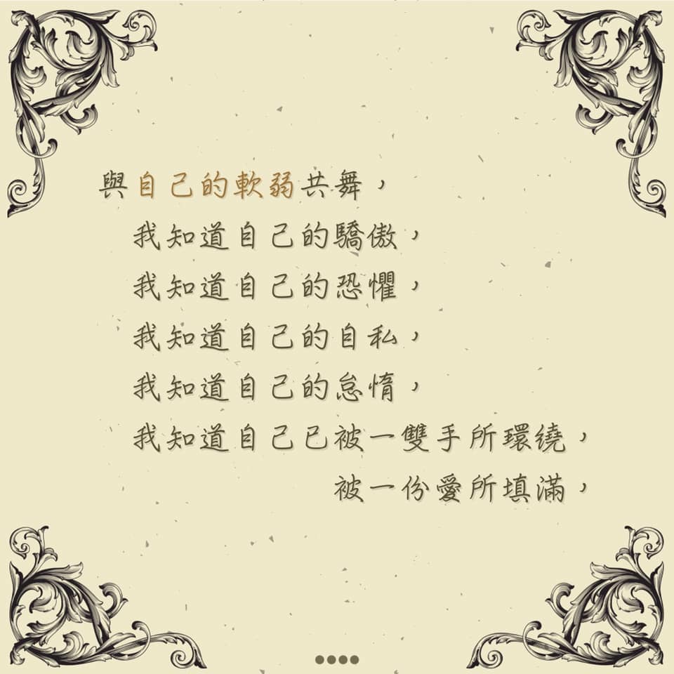 此時此刻不也如此嗎?看似疫情好像帶來了問題,或是我們生命中的刺帶來了問題,走著走著,數算著基督護佑我們的一切,我們已有辦法去面對問題、解決問題,最後發現,原來沒有問題,我們早已在軟弱中得著剛強了!