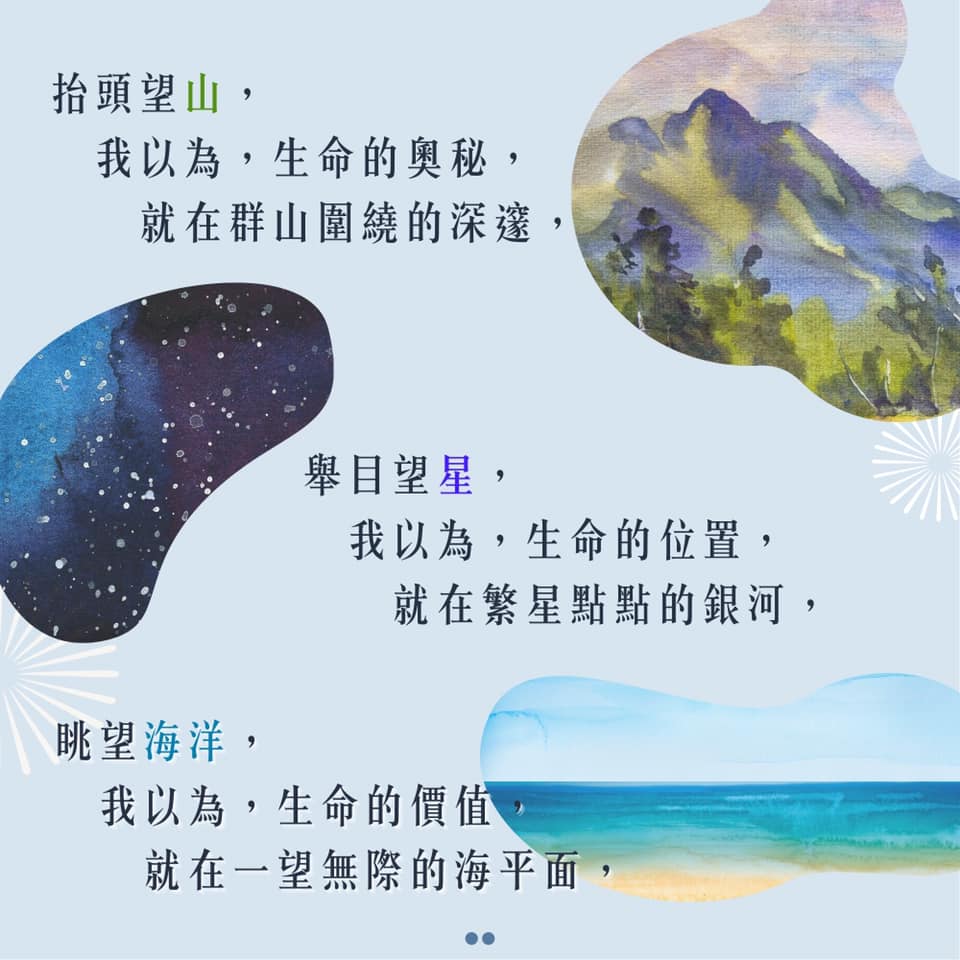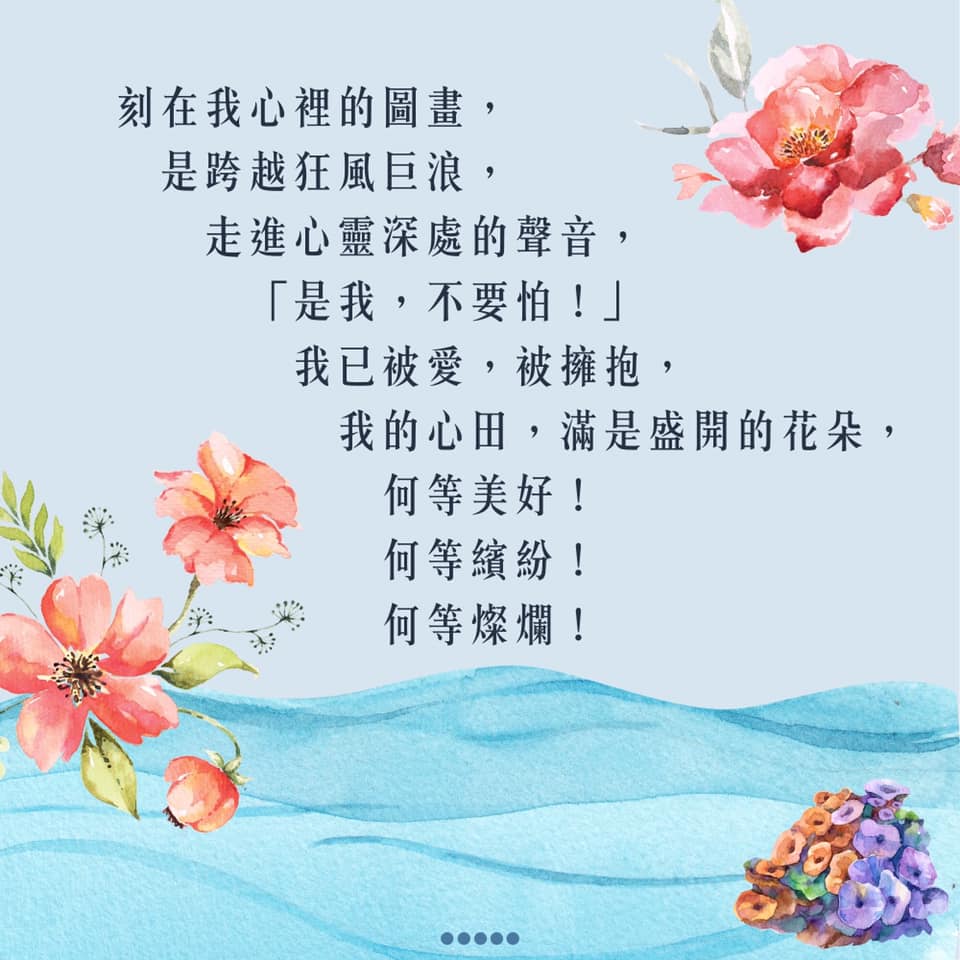 轉變,皆在基督的手裏,無論是實體或線上,無論是在此地或是異地,我們共有一段記憶,共同觀看天上的星,人生的旅途或有雖甜苦辣,不要忘記了,星依然閃爍!放慢腳步,去訴說美好,而不要急著去恢復,去做些什麼,讓基督的恩典,源源不絕的供應你我,從內而外溢出到身旁的夥伴,這就是–刻在我們心裡的圖畫!