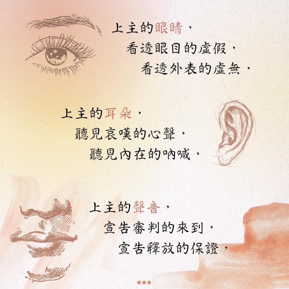 上主的信息,永遠是對「我」自己訴說的。資訊傳遞迅速的世界,我們絲毫不費力的可以堆砌許多「知識」,以此對身旁的人事物進行判斷與評論,愈是批評,就愈讓自己內心浮現優越感,好像我可以比別人更好。然而一旦被詢問,既然有這麼多意見,你願不願意投入的時候,很多推託的藉口就跑出來了:「我很忙」、「誰比我更適合」……等,隨著我們習慣這麼說的時候,早就不自覺得把自己跟上主劃開距離,即便嘴裡說得再多信仰語言,只怕都是虛偽的言詞,僅是壓迫他者的工具罷了。