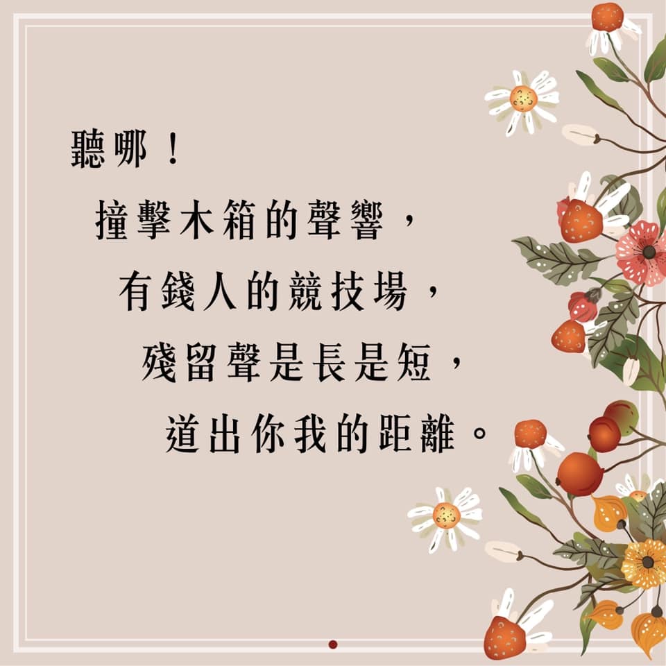 耶穌說完這些,轉向聖殿庫房的對面,看著大家怎樣投錢在奉獻箱。一下子,出現了穿著華麗、趾高氣昂的人們,彷彿深怕別人不知道他多有錢一樣,來到奉獻箱前面,拿出自己預備好的「奉獻」,開始把這些錢投入箱子。此起彼落的撞擊聲,延續了好一會兒,下一個來的人,依舊如此,原來,殘留聲的長短,成為了有錢人的競技場。奉獻不再是奉獻,反倒成了炫富的現場,平凡的小人物,受制於經學教師的教導,又不得不照常履行宗教義務,但愈遵行愈自卑,深覺離上帝愈來愈遙遠。
