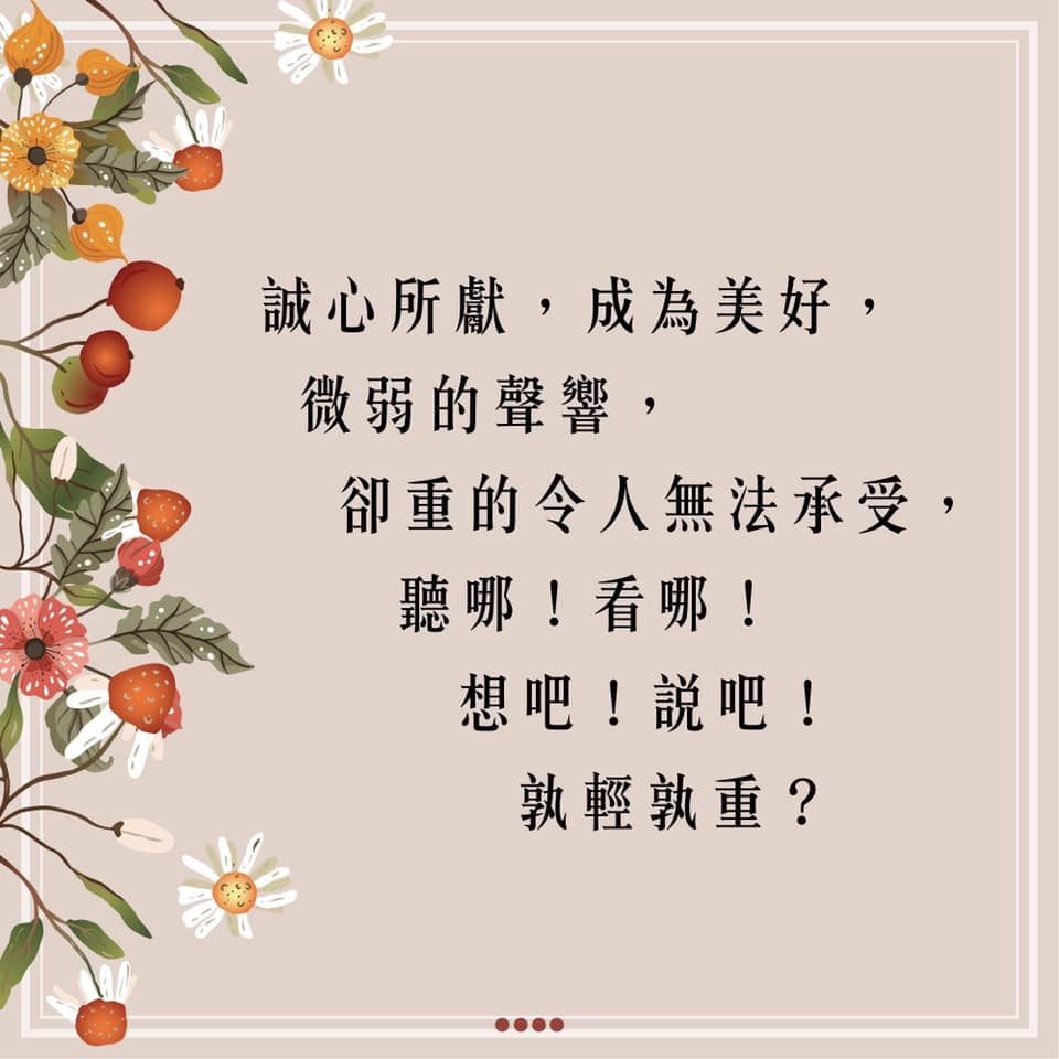 不是多與少,而是寡婦誠心獻上所有,成就了美好。這份美,劃破人們內心的黑暗,戳破人們在競爭遊戲搶破頭的慾望。勝過黑暗,不是靠著更多的束縛與要求,而是通過奉獻自己成為美好,基督的生命,顯露了此信息,更呼召每一個跟隨他的人起來,全然獻上自己。