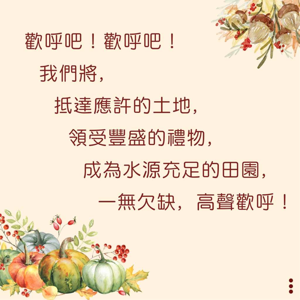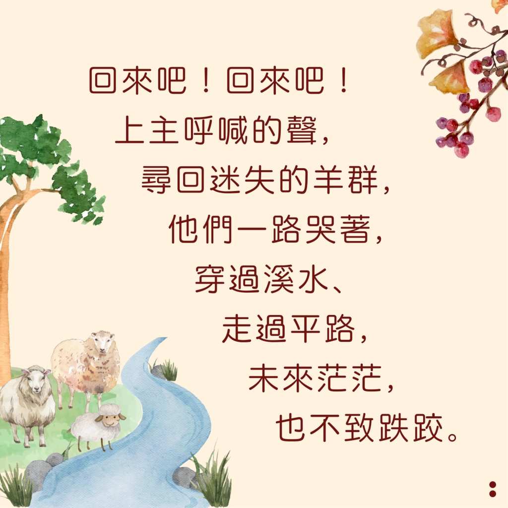 舊的一年,我們被打亂了既有的節奏,彷彿被擄往遙遠之處的以色列,對迷惘的未來感覺恐懼,期盼著何時才能回到原有的樣貌。上主領著以色列回到他的恩典,不再是「過去」的那地,而是在熟悉之處看見嶄新的「未來」,或許令人感覺陌生,但卻滿有豐盛的祝福,一無缺乏。我們的歌,成為了喜樂的詩篇,訴說上主永恆不變的愛,也訴說他在你我生命的作為。