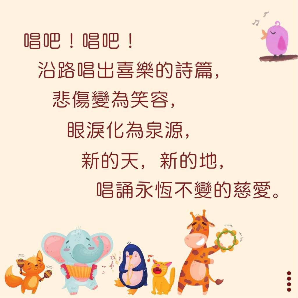 沿路唱出喜樂的詩篇,