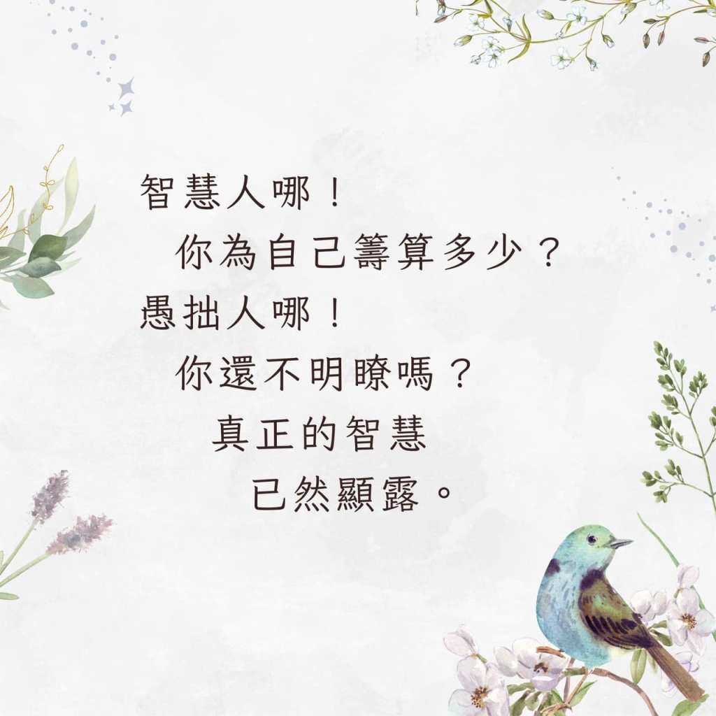 這是保羅所要帶給哥林多教會的信息,當智慧的風吹起,看似一個又一個不同的「問題」,實則透露出基督僕人對教會的愛,期盼每個信徒,每間教會,終能為這個混亂的時代捎來盼望。