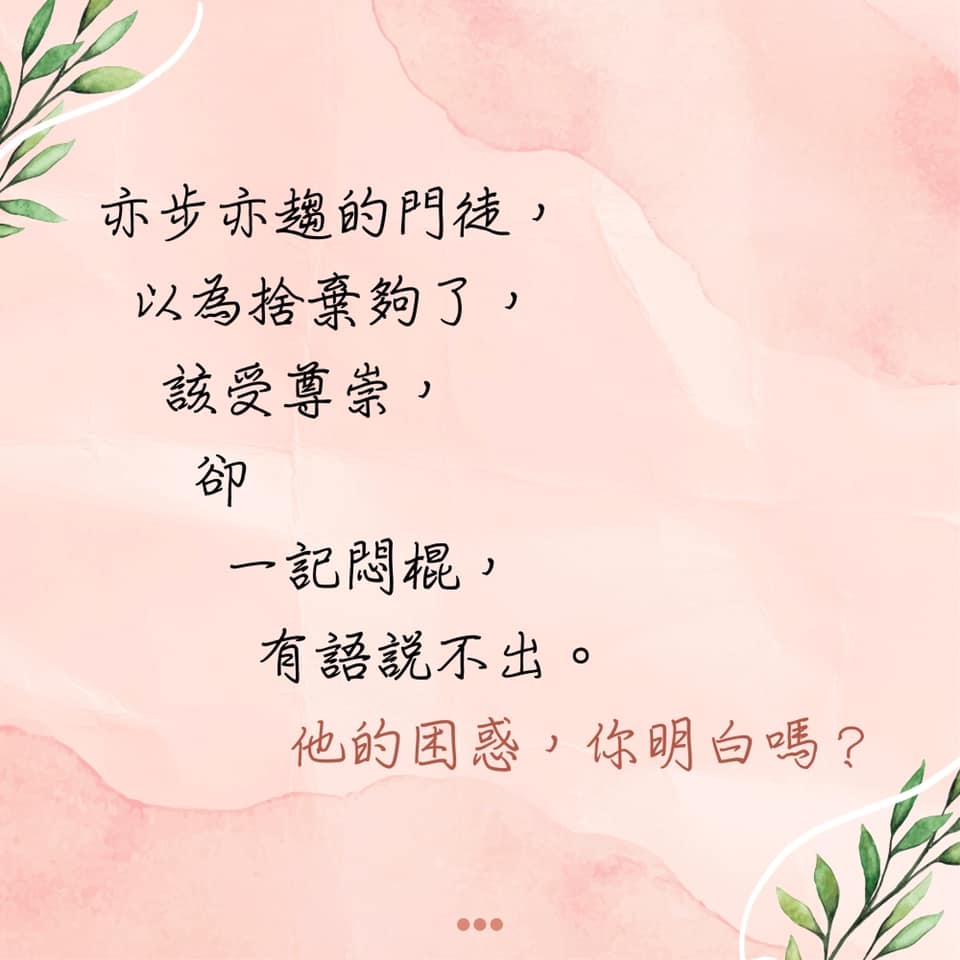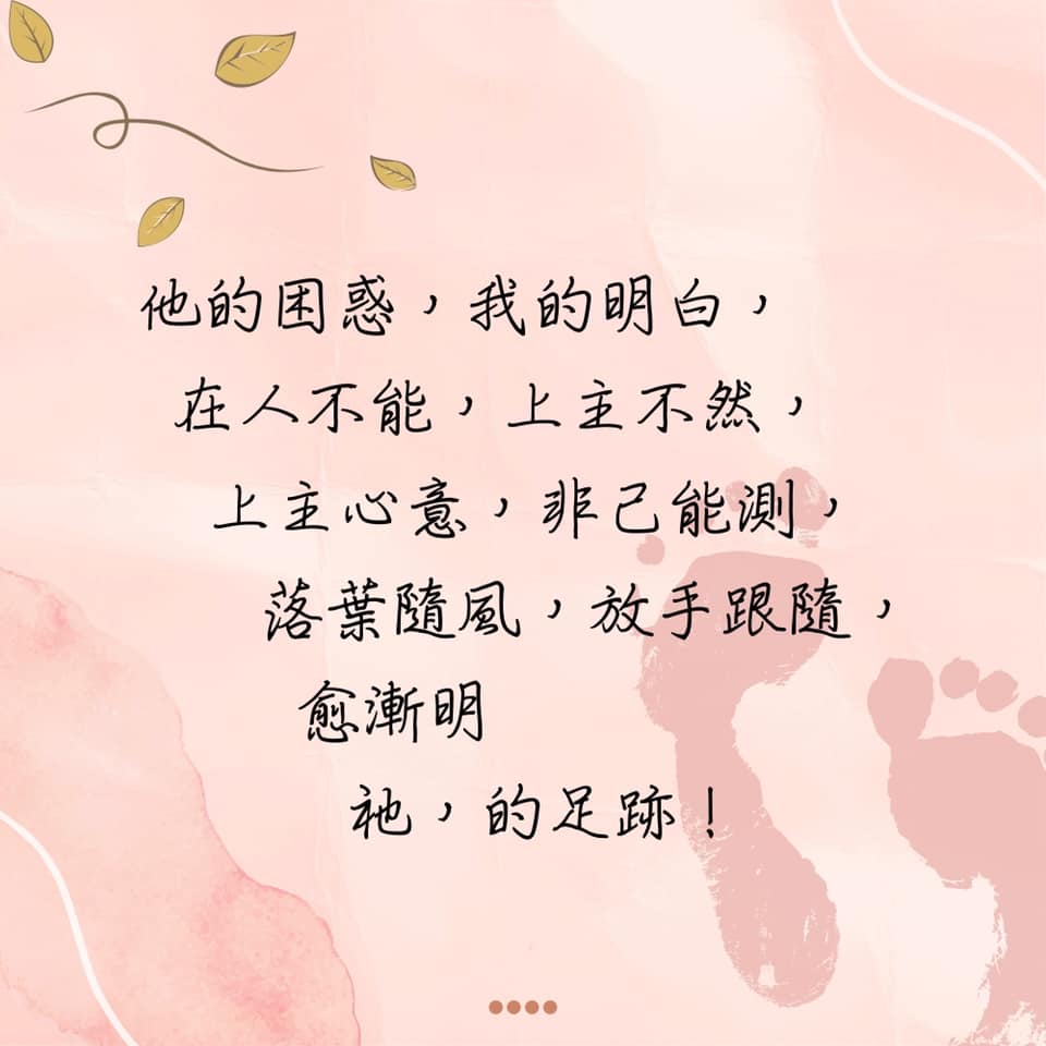 信仰,是一份奧秘,作為一個信仰者,我們學習走在上帝的奧秘裡,在每個時間點,每條道路瞥見他的作為。源於此,等候與耐性是重要的功課,著急的時候,人很難看得清實況,也很難看得見上帝所預備的道路。